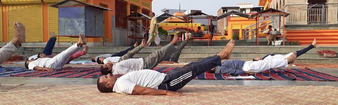 प्रतापगढ़। जिलाधिकारी डा0 नितिन बंसल के निर्देशानुसार आजादी के अमृत महोत्सव के अन्तर्गत अमृत योग सप्ताह (दिनांक 14 जून से 20 जून) एवं अष्टम अन्तर्राष्ट्रीय योग दिवस 21 जून 2022 के क्रम में दिनांक 19 जून को जनपद के स्वास्थ्य केन्द्रों में आयोजत आरोग्य मेला में 4520 लोगों ने योगाभ्यास किया। इसके अलावा माँ बेल्हा देवी मन्दिर पर भी लोगों द्वारा योगाभ्यास किया गया जिसमें योग प्रशिक्षकों द्वारा योग के महत्व के विषय में जानकारी दी गयी। योग प्रशिक्षकों द्वारा भुजंगासन, मकरासन, भद्रासन, त्रिकोण आसन, ताड़ासन, वृक्षासन, पवनमुक्तासन, कपालभाति, अनुलोम-विलोम, ध्यान आदि का योगाभ्यास करवाया गया। अमृत योग सप्ताह में प्रशिक्षकों द्वारा समाज के विभिन्न आयु वर्ग के युवा, महिला, सरकारी विभाग के अधिकारी, कर्मचारी, व्यापारी, स्वयं सेवी संगठनों को योग का प्रशिक्षण दिया जा रहा है। दिनांक 20 जून को शिक्षा विभाग द्वारा विद्यालयों में एवं कृषि विभाग द्वारा समस्त बीज गोदामों पर योगाभ्यास का कार्यक्रम आयोजित किया जायेगा।
