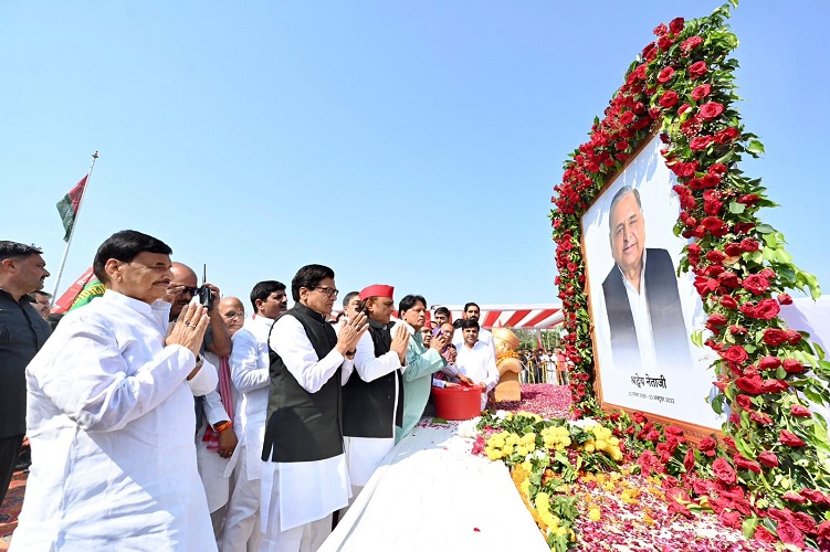 इस अवसर पर अखिलेश यादव ने नेताजी को शत-शत नमन करते हुए उनके संघर्ष और सिद्धांतों पर चलते हुए सपनों को पूरा करने का संकल्प लिया। उन्होंने कहा कि नेता जी ने समाजवादी विचारों और गरीबों, वंचितों, शोषितों, पिछड़ों, दलितों, अल्पसंख्यकों को न्याय और राजनीतिक ताकत दिलाने के लिए जीवनभर संघर्ष किया।यहां समाधि स्थल पर नेताजी की याद में मेमोरियल बनाया जा रहा है। अखिलेश यादव ने नेताजी मुलायम सिंह यादव की पुण्यतिथि पर श्रद्धांजलि अर्पित करते हुए कहा कि नेताजी का जीवन संघर्ष, समर्पण और समाजवाद की जीवंत मिसाल है। उन्होंने कहा कि नेताजी के मेमोरियल से आने वाली पीढ़ियों को नई प्रेरणा मिलेगी। यह स्थल समाजवादियों के लिए न केवल स्मृति का प्रतीक होगा, बल्कि उनके आदर्शों और विचारों को जन-जन तक पहुंचाने का केंद्र भी बनेगा। समाजवादियों का मेमोरियल नेताजी को समर्पित है। नेताजी के इस मेमोरियल से हम सबको हमेशा प्रेरणा मिलती रहेगी। इस मेमोरियल के माध्यम से नेताजी हम सबके जीवन में हमेशा वैसे के वैसे अपने विचारों के रूप में जिंदा रहेंगे। नेताजी की पुण्यतिथि पर हम लोग संकल्प लेते हैं कि संविधान की रक्षा के लिए संविधान को बचाने के लिए एकजुट होकर संघर्ष करते रहेंगे। संविधान हम सबके लिए संजीवनी है। संविधान ही ढाल है। हम सब नेताजी का संदेश जन-जन तक पहुंचाएंगे। किसानों, मजदूरों, अल्पसंख्यकों, आदिवासियां, पिछड़ों, दलितों के हक और सम्मान के लिए लड़ाई लड़ते रहेंगे।