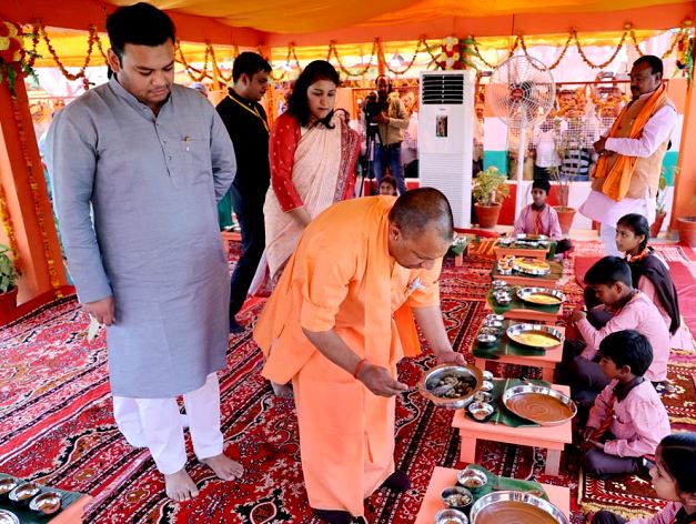 • बेसिक शिक्षा परिषद के स्कूलों में 01 करोड़़ 80 लाखबच्चों का नामांकन कराकर अध्ययन से जोड़ा गयामुख्यमंत्री ने विद्यालय के बच्चों को भोजन परोसा।