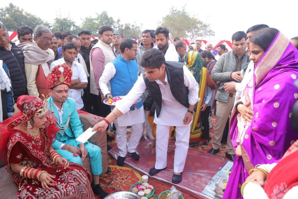 फिरोजाबाद जनपद के शिकोहाबाद में रिच स्काई फाउंडेशन द्वारा एक भव्य सामूहिक विवाह समारोह का आयोजन किया गया। कार्यक्रम में कई युवा जोड़ों ने अपने परिजनों और अतिथियों की मौजूदगी में पारंपरिक रीति-रिवाजों के साथ विवाह संपन्न किया। आयोजन ने सामाजिक सहयोग और मानवीय संवेदनाओं की एक सशक्त तस्वीर पेश की। समारोह का सफल संचालन फाउंडेशन की चेयरमैन तनु यादव ने किया। विवाह उपरांत नवविवाहित जोड़ों को सोफा, कुर्सी, मेज, वस्त्र सहित अन्य आवश्यक वैवाहिक उपहार सामग्री भेंट की गई, जिससे नवदंपतियों को नए जीवन की शुरुआत में सहयोग मिल सके।