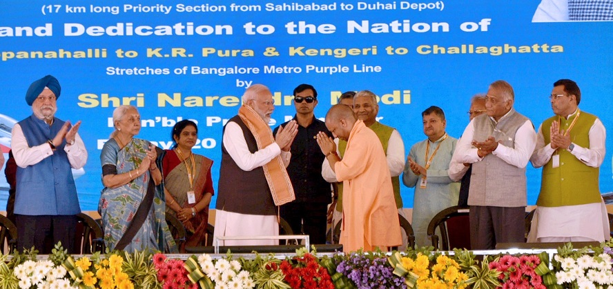योगी ने कहा कि पीएम मोदी के मार्गदर्शन एवं नेतृत्व में देश की सबसे बड़ी आबादी का राज्य एक नए इंफ्रास्ट्रक्चर का दर्शन कर रहा है। ये डबल इंजन सरकार के ही प्रयास हैं कि उत्तर प्रदेश के 5 शहर ऐसे हैं जहां अत्याधुनिक पब्लिक ट्रांसपोर्ट की व्यवस्था के रूप में मेट्रो रेल का सफलतापूर्वक संचालन हो रहा है और फरवरी में आपके ही कर कमलों से आगरा में भी मेट्रो रेल का संचालन प्रायोरिटी सेक्शन में प्रारंभ होगा। यही नहीं, वाराणसी में बाबा विश्वनाथ के धाम और देश की सबसे प्राचीन अविनाशी काशी में भी उसकी पुरातन काया को नए कलेवर में बदलते हुए देश की पहली रोपवे सर्विस का कार्य युद्ध स्तर पर चल रहा है। यह एक नया इंफ्रास्ट्रक्चर, चाहे वो हाईवे के रूप में हो, एक्सप्रेस हाईवे के रूप में, ईस्टर्न एंड वेस्टर्न डेडिकेटेड फ्रेट कॉरिडोर के रूप में और लॉजिस्टिक हब के रूप में स्थापित करने के जो प्रयास प्रारंभ हुए हैं आज उसके चमत्कारिक परिणाम देखने को मिल रहे हैं। ये उसी का परिणाम है कि देश ने अपनी आजादी के अमृत महोत्सव वर्ष में इस अत्याधुनिक वर्ल्ड क्लास इंफ्रास्ट्रक्चर के माध्यम से भारत को दुनिया की पांचवीं सबसे बड़ी अर्थव्यवस्था के रूप में बढ़ते हुए देखा है। उत्तर प्रदेश की राज्यपाल आनंदी बेन पटेल, केंद्रीय आवासन एवं शहरी मामलों के मंत्री हरदीप सिंह पुरी,केंद्रीय मंत्री रि.जनरल वीके सिंह, कौशल किशोर, उत्तर प्रदेश भाजपा अध्यक्ष चौधरी भूपेंद्र सिंह, प्रदेश सरकार के मंत्री नरेंद्र कश्यप, सांसद राजेंद्र अग्रवाल, सतपाल सिंह, अनिल अग्रवाल, डॉ. लक्ष्मीकांत बाजपेई, विजय पाल सिंह तोमर, कांता करदम, महापौर सुनीता दयाल, अध्यक्ष जिला पंचायत ममता त्यागी समेत विधायकगण और वीडियो कांफ्रेंस के माध्यम से बेंगलुरू से जुड़े कर्नाटक के मुख्यमंत्री सिद्धारमैया उपस्थित रहे।