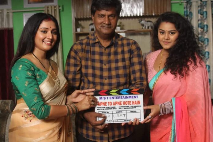फ़िल्म निर्माता विनीत तिवारी की बतौर निर्माता पहली भोजपुरी फ़िल्म ” अपने तो अपने होते हैं ” की शूटिंग फ़िल्म के मुहूर्त के साथ ही मुम्बई के विरार में शुरू हो गई है । एम ऐस टी एंटरटेनमेंट बैनर तले बन रही फ़िल्म अपने तो अपने होते हैं में अभिनेता राज यादव , तन्नु श्री , अंशुमान सिंह ,मणि भट्टाचार्या , संजय पाण्डेय व विनोद मिश्रा, परी सिंघानिया मुख्य भूमिकाओं में हैं ।