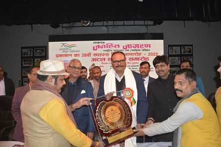 विशिष्ट अतिथि के रुप में मौजूद राज्य सूचना आयुक्त सुभाष सिंह ने कहा कि अटलजी केवल राजनेता नहीं थे बल्कि कवि व प्रखर पत्रकार भी थे। संघ के प्रचारक के नाते संघ ने उनको जो भी दायित्व दिया उन्होंने उसको बखूबी निभाया। 1948 में अटल जी को राष्ट्रधर्म के संपादक का दायित्व सौंपा गया। जिस पत्रकारिता की नींव अटल जी ने रखी थी वो आज देश में छाई हुई है। सत्य का पक्ष सबसे बड़ा पक्ष होता है, वही निष्पक्ष है। उन्होंने कहा कि प्रिंट मीडिया पहले भी महत्वपूर्ण था और आज भी है। आज भी पाठक अखबार में सत्य खोजता है। सोशल मीडिया व डिजिटल मीडिया ने पत्रकारिता की भाषा बदल दी है। जिसमें सत्य खोजना बड़ा मुश्किल है। आजादी के पहले भी पत्रकारिता एक तरफा संवाद थी, विरोध की आवाज कम थी। आज राष्ट्रवादी पत्रकारिता चरम पर है, सोशल मीडिया ने सभी को बदल दिया है। प्रिंट मीडिया हिंदी पत्रकारिता की रीढ़ है।